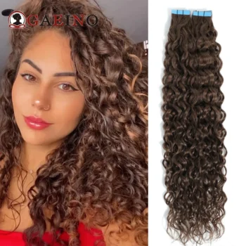 Tape In Hair Extensions Water Wave Real Human Hair 2# Dark Brown Natural Cural Tape On Hair Ectensions Skin Weft Hairpiece 2G/Pc