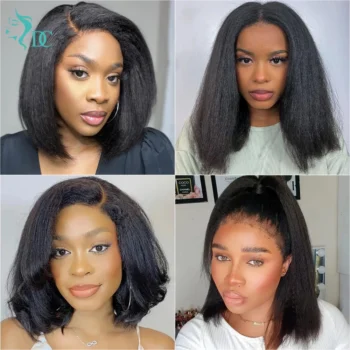 Introducing the 4C Hairline Kinky Straight Bob Human Hair Wig, your perfect solution for effortless style and versatility. This stunning bob wig offers a natural look and feel, making it an essential addition to your hair collection.