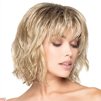 HAIRJOY Synthetic Hair Blonde Brown Wigs for Women Curly with Bangs Short Wig