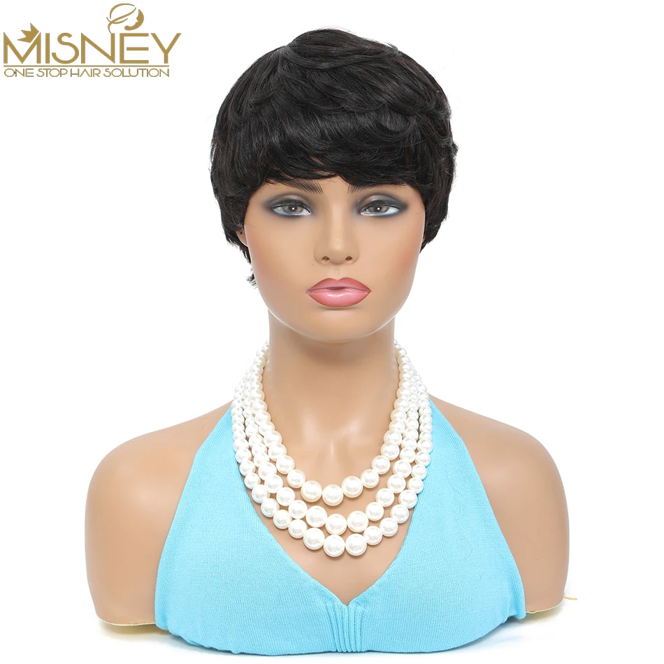 Short Bob Straight Human Hair Wigs Natural Color Brazilian Remy Hair Pixie Cut Wig Cheap Human Hair Wig For Black Women Misney