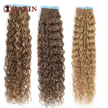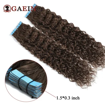 Tape In Hair Extensions Water Wave Real Human Hair 2# Dark Brown Natural Cural Tape On Hair Ectensions Skin Weft Hairpiece 2G/Pc